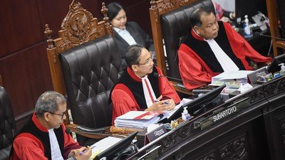 Ketua MK Suhartoyo dalam persidangan di Gedung MK, Jakarta Pusat, Senin (22/4/2024) mengatakan, “Menolak permohonan pemohon untuk seluruhnya.”